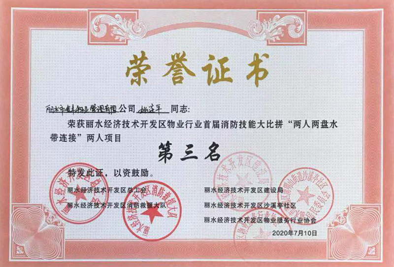 首屆消防技能大比拼“兩人兩盤水帶連接”第三名 2020-07-23 17:45:19 24 上一篇 : 首屆消防技能大比拼“室內(nèi)消防栓出水救火操”第三名 下一篇 : 先進物業(yè)服務(wù)企業(yè)