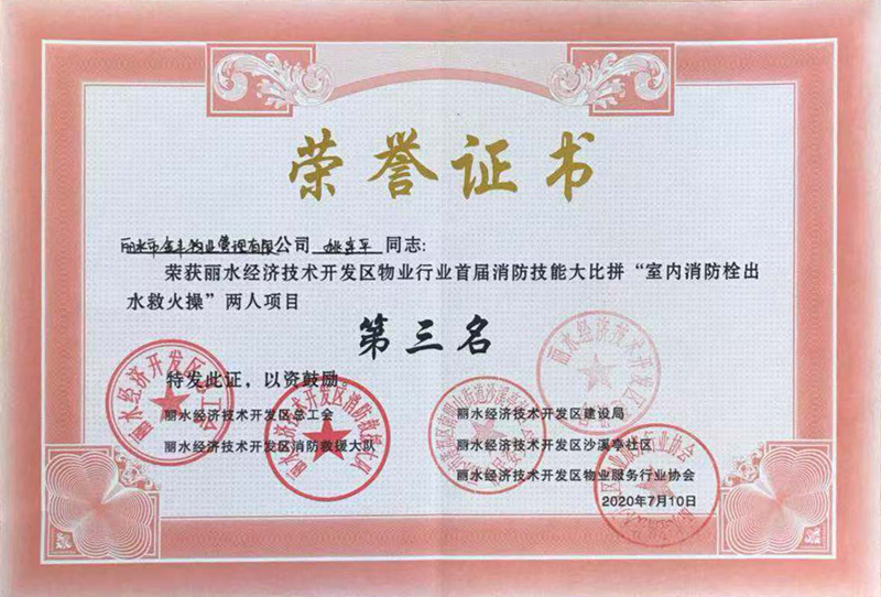 首屆消防技能大比拼“室內(nèi)消防栓出水救火操”第三名 2020-07-23 17:46:05 18 上一篇 : 首屆消防技能大比拼團體總分第三名 下一篇 : 首屆消防技能大比拼“兩人兩盤水帶連接”第三名
